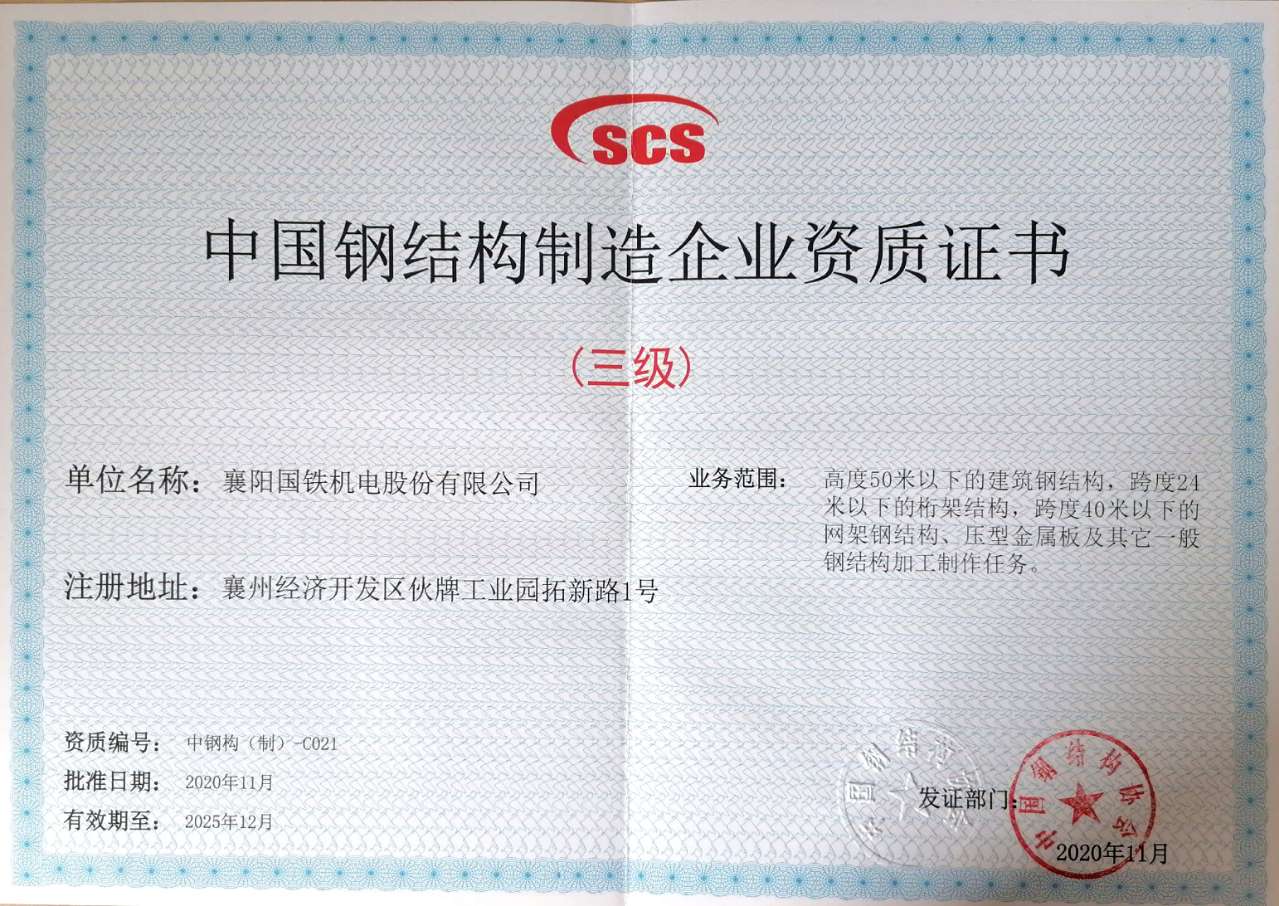 中國鋼結構制造業企業資質證書